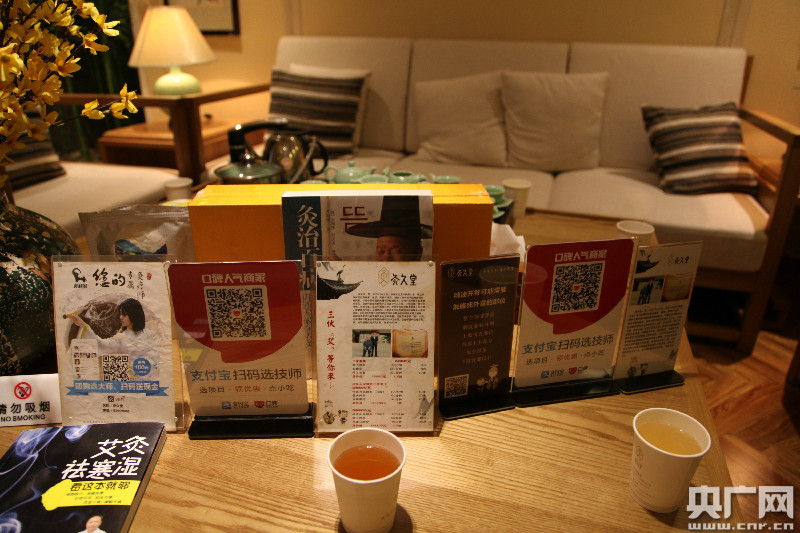 央廣網杭州8月29日消息(記者張國亮) 下館子點菜直接拿出手機掃碼這種方式已經普及到杭州街頭大大小小的餐館。如今,這種便利的下單方式開始進軍足療、養生館等服務行業。記者在杭州文二西路的一家“灸久堂”看見,包廂內設有一張二維碼,選技師、點項目,連同在線支付、優惠抵扣等在手機上操作就可以完成,顧客通過掃一掃就可以知道店內有哪些技師,他有多少年從業經驗,服務過多少名客人,甚至現在能不能預約服務。