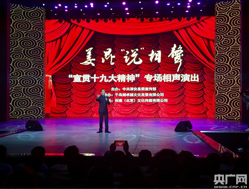 央廣網淳安11月8日消息(記者傅煒如 通訊員王澤宇)11月8日晚,由中共淳安縣委宣傳部主辦,以“宣貫十九大精神”為主題的專場演出在千島湖水之靈劇場上演。《姜昆“說”相聲》團隊響應十九大號召,身體力行地踐行十九精神,把歡樂送到基層,把傳統文化的魅力傳遞給淳安百姓。