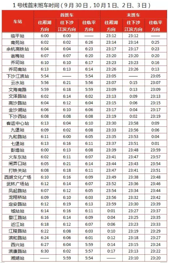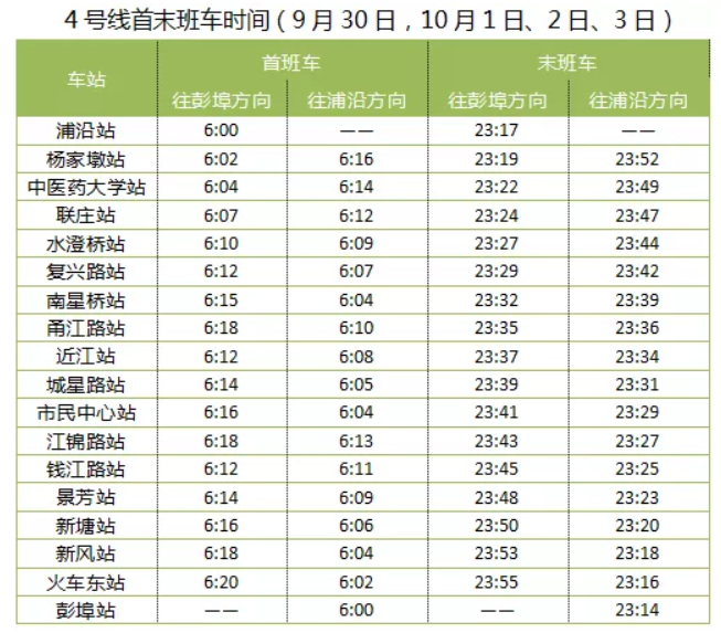 具體來說,9月30日至10月3日,杭州地鐵線網將延長運營服務半小時,地鐵1、2、4號線末班車起點站發車時間延遲至23:00。10月4日至10月7日地鐵運營服務時間不延長,將視情況加密行車間隔。