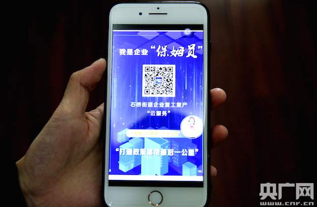 “云服務(wù)保姆員讓我們少跑路甚至跑零次了!”原來,蔣文鋒通過“掃一掃二維碼”進入石橋街道“云服務(wù)”平臺提交了企業(yè)復(fù)工需求和申報表,石橋街道助企保姆員第一時間在線上提供“復(fù)工人員包車(專列)返杭”政策,并幫助對接人社、交通部門,只花了半天時間就獲得了“包車”通行證。