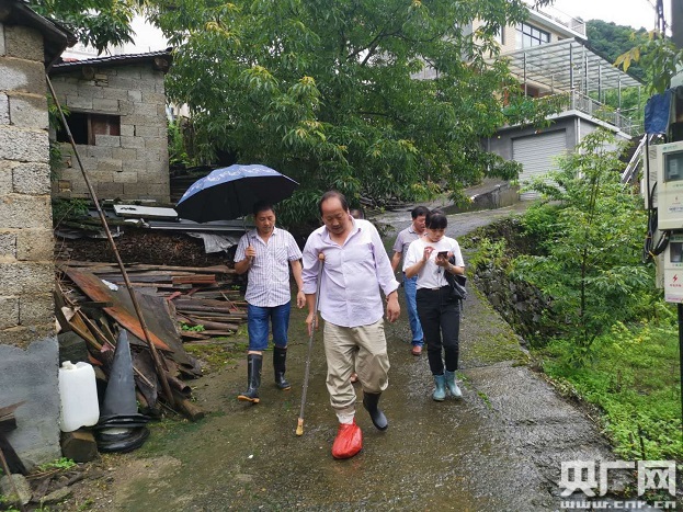 在臨岐鎮審嶺腳村,“拐杖書記”魯普恒也忙個不停。前不久,魯普恒自家造新房時不幸右腳骨折,但是防汛工作一點都沒耽誤。7日凌晨三點,審鋒自然村村民童衛國屋后塌方,魯書記接到消息,第一時間組織村干部、黨員、網格員和村民趕往童衛國家中,迅速騰空房屋,安排人員轉移,拉起警戒線,并與鎮分管領導匯報,聯系縣規劃和自然資源局前來實施地質勘查。“我們都勸他在家休息,可他就是坐不住。”大家都這樣說。這幾天,魯普恒每天清晨四點多就起床,一邊安排村巡防、值班人員,一邊拄著拐杖在村里查看村危房、地質災害點、河堤。幾天時間里,這位“拐杖書記”已走訪農戶260余戶,每天步數上萬計。