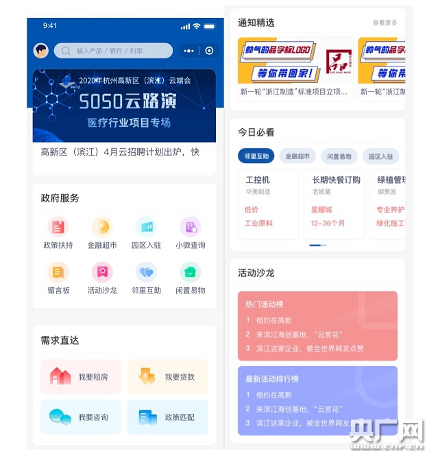 本次一同推出的“濱江上馬石”微信小程序,是杭州高新區(濱江)為區內企業打造的e服務平臺。該平臺依托城市大腦-經濟主體大數據平臺底座,及應用數據的支撐,以“扶上馬、送一程”為目的,將進一步鏈接政府-企業-銀行-園區,營造出更加良好的創新創業生態。