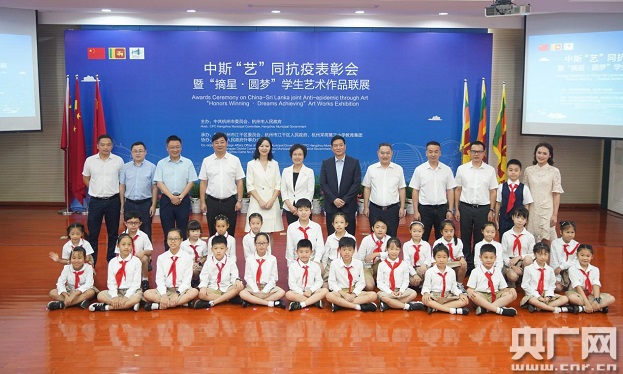 據了解,本次藝術展以“攜手抗疫”為主題,不僅加深了學生的愛國主義情懷,還促進了中國文化的傳承,更是通過校園美育,讓“中斯”友誼更深厚。2019年年底,杭州采荷第三小學教育集團組織采三學子參加斯里蘭卡“MANJAREE2020”國際繪畫比賽,榮獲一、二、三等獎30個。今年疫情期間,學校還開展了“抗‘疫’主題書畫展”“詩詠英雄,致敬逆行者”“聲援戰‘疫’”“聲動采三”等線上抗疫主題活動。