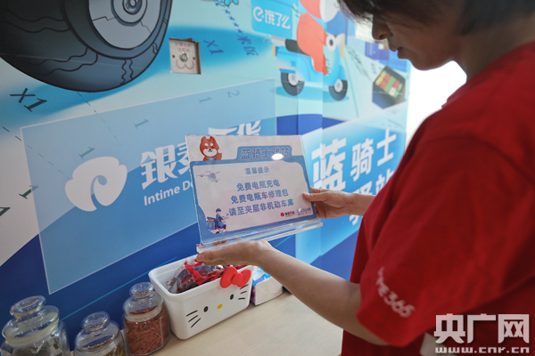 銀泰的工作人員表示:“設立休息站是希望奮斗在城市的騎士們可以在銀泰稍作歇息,更好地出發。小哥們可以在這里喝水泡茶、落腳吃飯、翻閱書刊、玩解壓游戲。我們為騎士‘坐騎’也提供了充電裝置、電動車修理包等。”