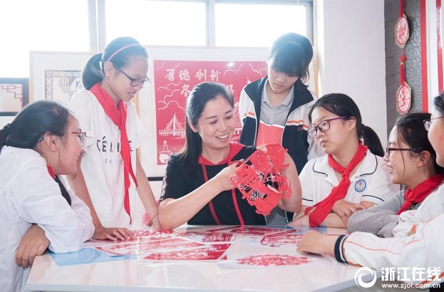 近日,湖州千金鎮紀委組織開展“童心向黨·剪紙喜迎十九大”活動,F場,孩子們在千金鎮金剪刀傳承人潘曉霞的指導下,充分發揮想像力進行創作,一雙雙小手剪出了廉潔、公正、愛國、守法等剪紙作品,以實際行動喜迎十九大;顒舆展示了潘曉霞的部分廉潔剪紙作品,大力倡導家長們從自身做起,端正行為,樹好榜樣,讓孩子們在廉潔家風中健康成長。 (浙江在線拍友 沈勇強 攝)