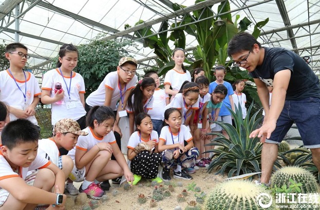 8月8日,在湖州市現(xiàn)代農(nóng)業(yè)技術(shù)學(xué)校的農(nóng)業(yè)示范基地里,來自杭州、湖州等地的20多名孩子在老師的指導(dǎo)下,認(rèn)識和了解各種草本、木本植物的生長特征和觀賞特性。據(jù)悉,該校組織的夏令營以“知農(nóng)情,識農(nóng)事”為主題,在接下去的5天時間里,孩子們還將參加絲綢扎染、植物識別、多肉組盆和文人花道等農(nóng)事體驗活動。(浙江在線拍友 鄧德華 攝)