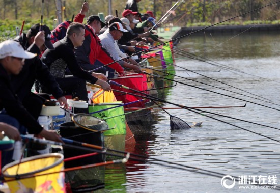 11月9日,湖州織里鎮開展秋季農民運動會釣魚比賽,各村的垂釣高手興致勃勃趕來參賽。隨著裁判長一聲令下,參賽選手掛上魚餌紛紛拋竿,沒過幾分鐘,一條條鮮活的鯽魚、草魚、鯉魚被收進魚護,釣者、觀者共享其樂。據悉,織里鎮每年都會根據各村的特色和群眾的愛好,舉辦釣魚、割稻、收白菜、耕地、織毛衣之類的農民趣味運動會,深得群眾喜愛。(記者 林云龍 胡楊 汪馳超)