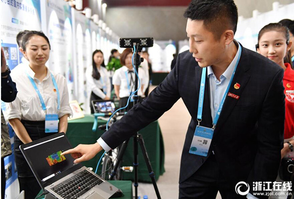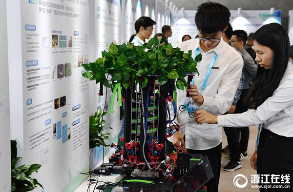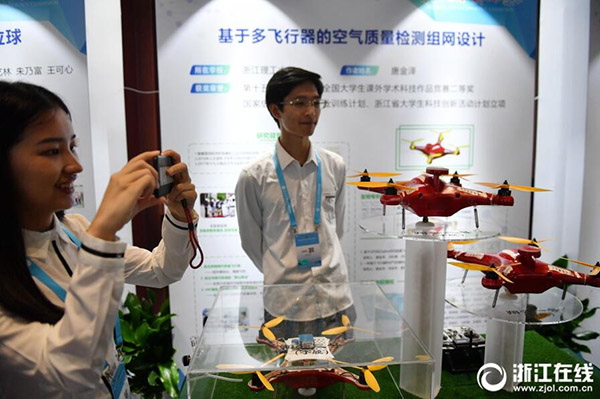 5月27日,浙江大學生優秀科技作品展在浙大紫金港校區舉行。展覽匯集了浙江各大高校近年來在國內外各大科技競賽中的優秀獲獎作品,展示浙江大學生創新創業的實踐成果。(記者 董旭明 攝)