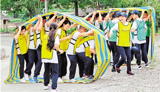 8月21日,在景寧畬族自治縣紅星街道崗石村,來自杭州新新飯店的員工在進(jìn)行戶外運(yùn)動(dòng)拓展訓(xùn)練。近年來,景寧畬族自治縣依托生態(tài)優(yōu)勢(shì),相繼推出戶外運(yùn)動(dòng)拓展訓(xùn)練、娛樂性軍事訓(xùn)練等健康產(chǎn)業(yè)休閑旅游項(xiàng)目,吸引大批游客。