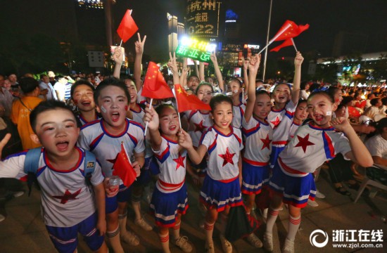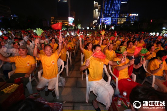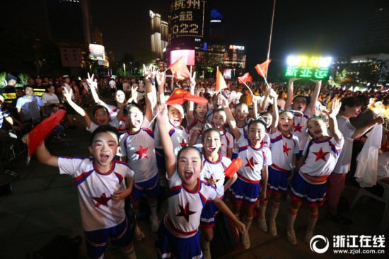 9月2日晚,數千市民齊聚杭州下城區武林廣場收看雅加達亞運閉幕式。當“杭州八分鐘”文藝表演在閉幕式上精彩上演時,人群中爆發出陣陣歡呼聲,喜迎亞運會進入 “杭州時間”。