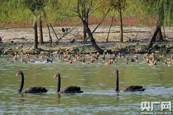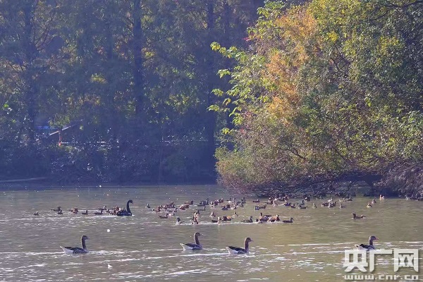 央廣網(wǎng)寧波11月14日消息(記者曹美麗 通訊員張海華) 天氣漸冷,候鳥紛紛南下越冬。最近,寧波雅戈爾動物園的水禽湖里忽然飛來了上千只野生鴛鴦。它們從北方而來,相中了動物園水禽湖這塊既不愁食物又安全的寶地,到這里過冬了!