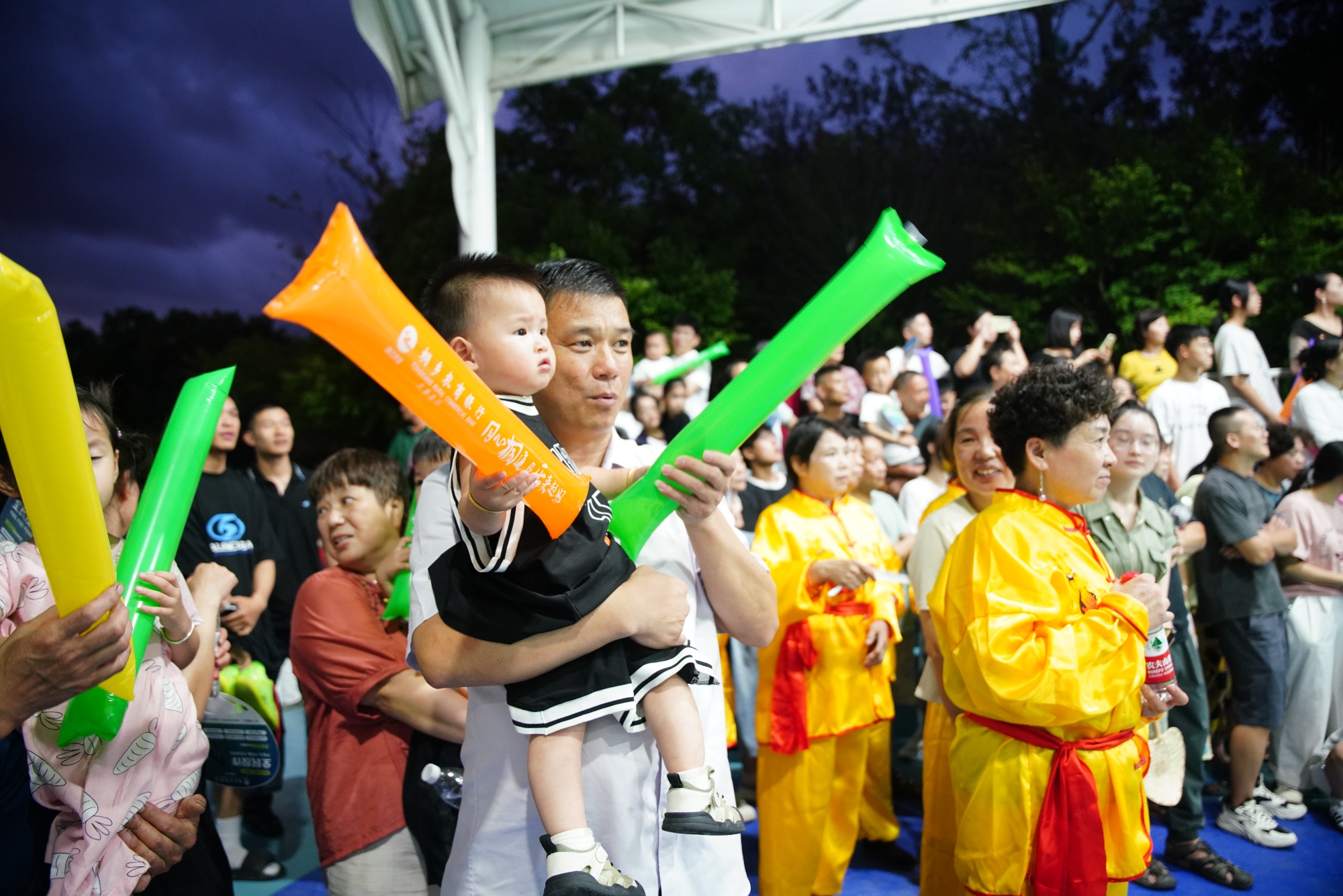 張國富帶領小孫子一起看籃球比賽(央廣網記者 尚天宇 攝)