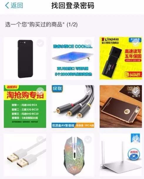 3.這里有很多驗證方式,選擇你所知道的方式,比如選一個你買過的商品,或者一個認識的朋友: