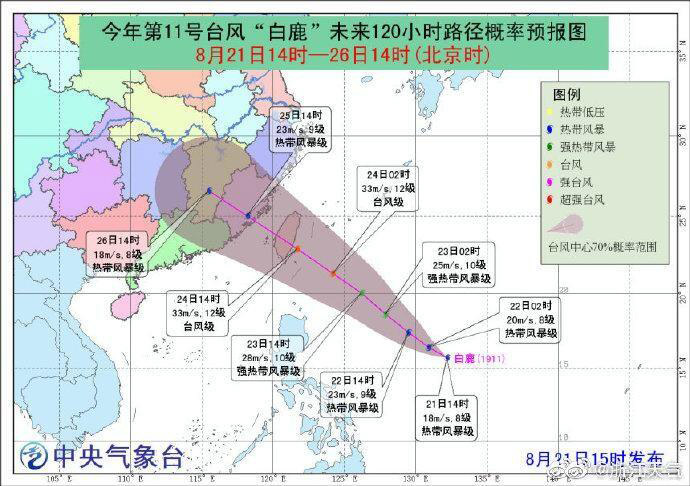 如果出現(xiàn)登陸我國的情況,可能會在25日前后登陸臺灣廣東福建一帶沿海,屆時浙江也將受到影響,風雨飄搖。胡嘯提醒,臺風“白鹿”存在登陸我國華南沿海的可能性,本周五起華南沿海地區(qū)需密切關(guān)注臺風動向,早做準備。