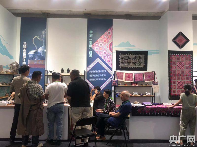 記者還在現場看到了來自全國各地的傳統非遺技藝。在“滇黔湘藏”四省區“非遺+扶貧”展銷活動區,來自云南、貴州、湖南、西藏四省(區)具有地域特色的傳統技藝項目集中進行展示,其中藏族唐卡、湖南土家織錦技藝、寶慶竹刻等展區以其獨特的技藝和精美的工藝品吸引眾多參觀者駐足欣賞。
