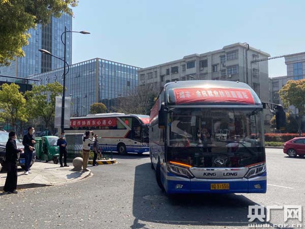 央廣網(wǎng)杭州3月19日消息(記者王權(quán) 曹文君 曹露浩)3月19日,6輛大巴車搭載著湖北恩施州146位赴杭復(fù)工員工,經(jīng)過(guò)1000多公里長(zhǎng)途跋涉抵達(dá)杭州。據(jù)了解,這是疫情發(fā)生后,首批湖北恩施籍員工跨省赴杭州返崗復(fù)工。此外,湖北恩施州至杭州的復(fù)工專列,定于3月21日從恩施火車站出發(fā)到杭州東站,將有1091名恩施籍員工返杭復(fù)工。