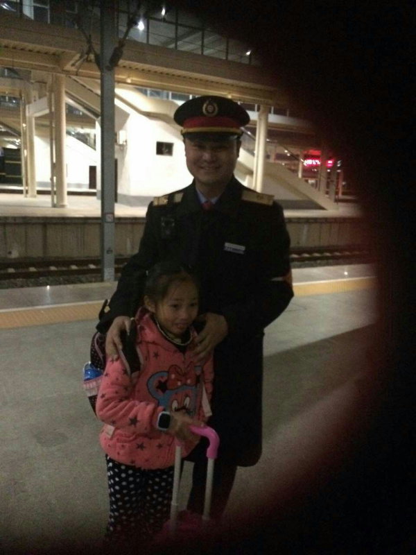 客運值班員何金中和小女孩